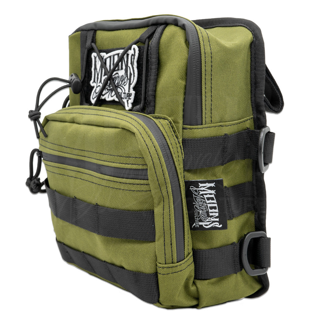 The BALKAN Molle handlebar bag is capable of holding all the essentials you need for a short road trip. The BALKAN can hold your wallet, phone, power-pack charger, small water bottle, tools or any other accessories. These are a limited run!